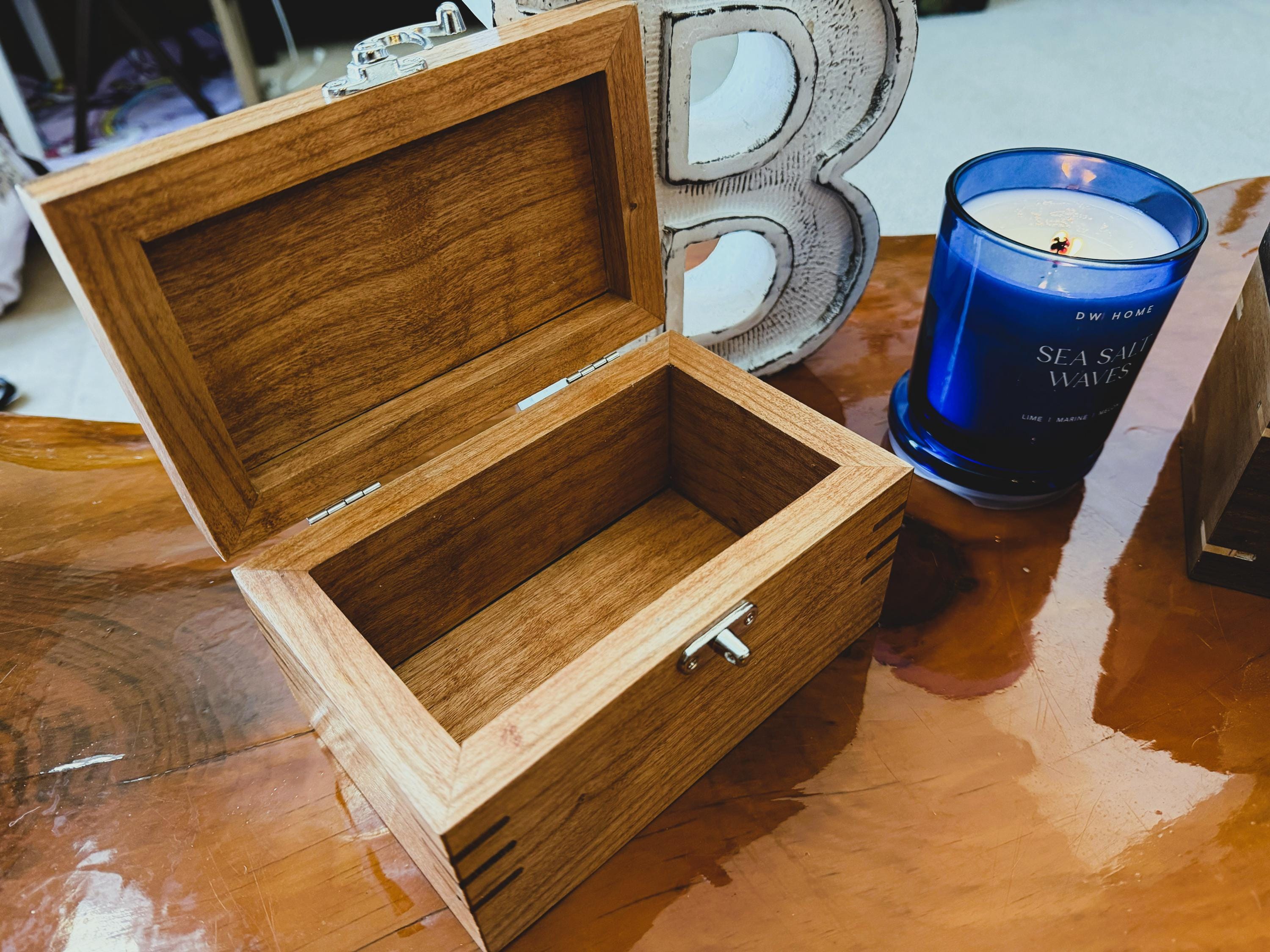 Each box is built one at a time in my small woodshop, using traditional joinery and a hand‑rubbed finish that highlights the natural beauty of the wood.
